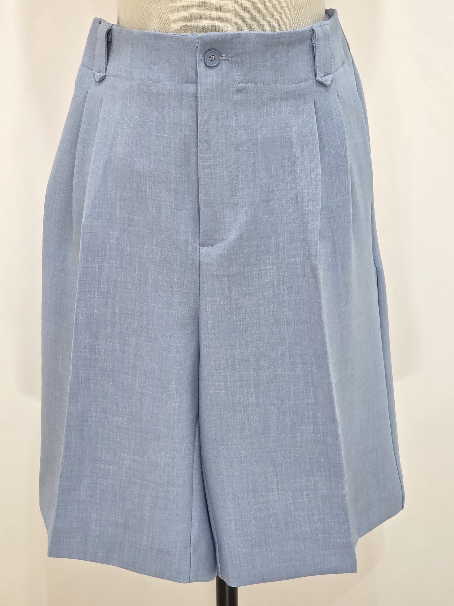 Bermuda vita alta con cerniera e tasche, gamba morbida e passanti. Tessuto di medio peso. Taglie francesi ( aggiungere 4)