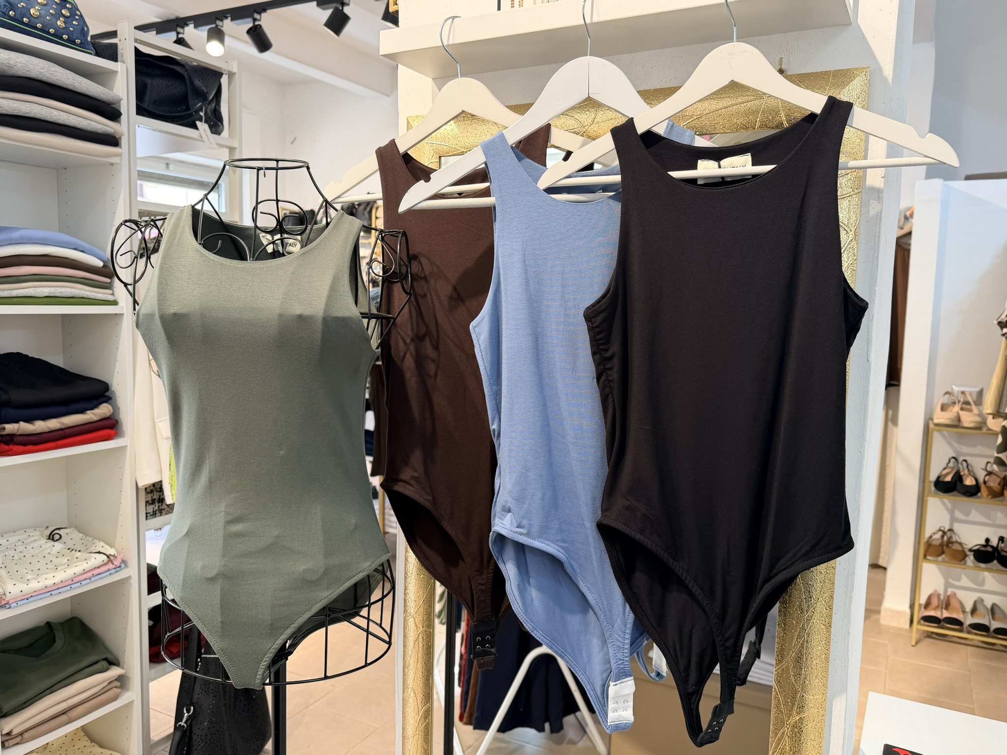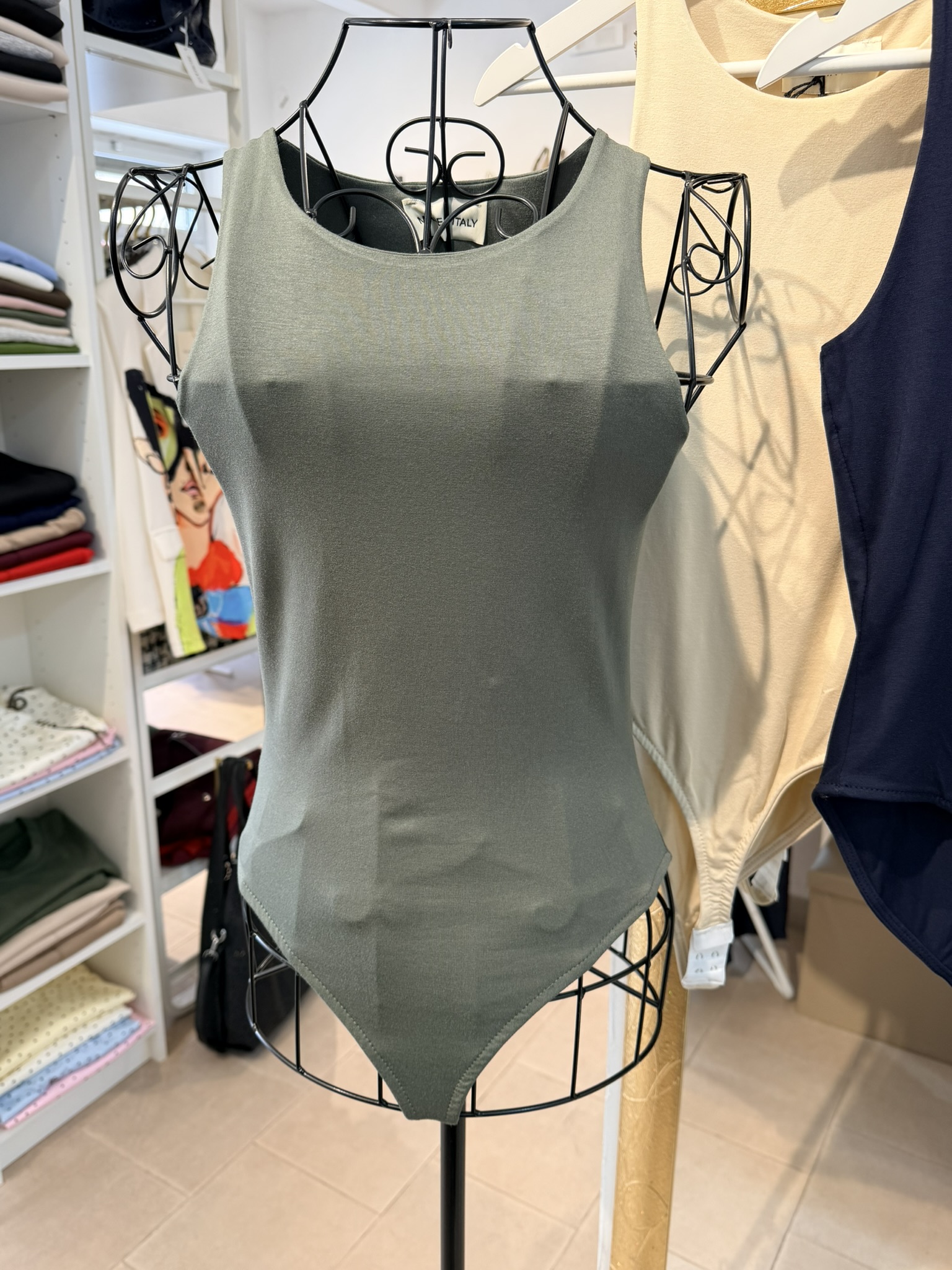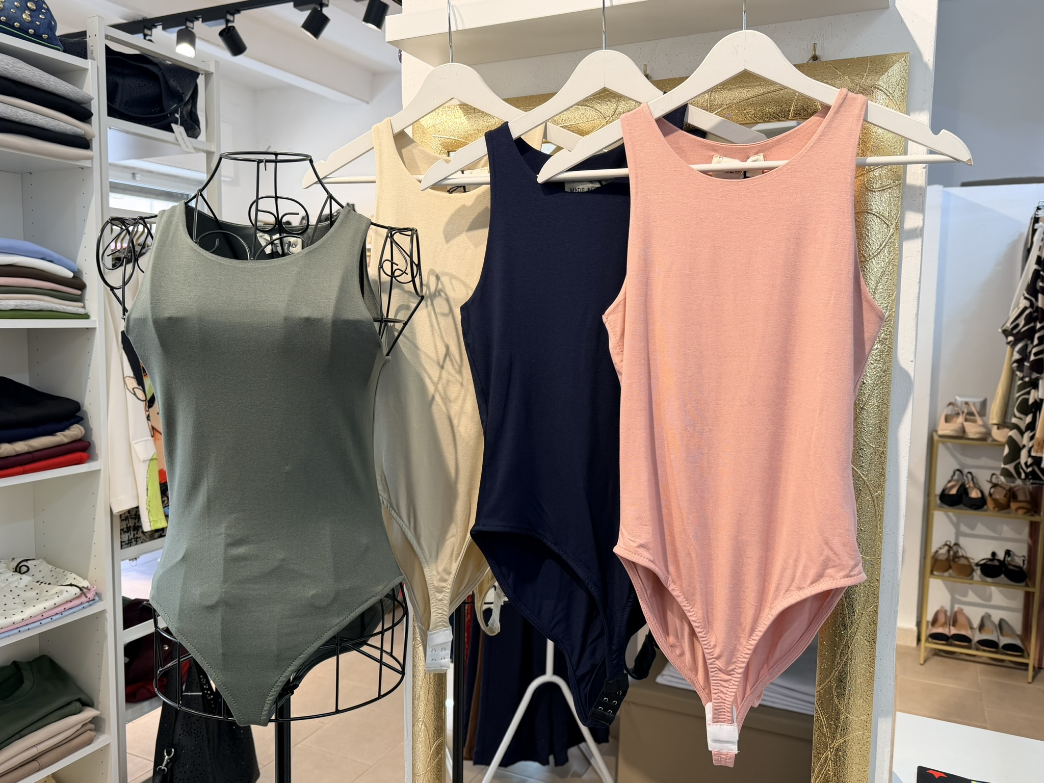 Body con scollo all’americana in viscosa, taglia unica con vestibilità dalla XS alla L