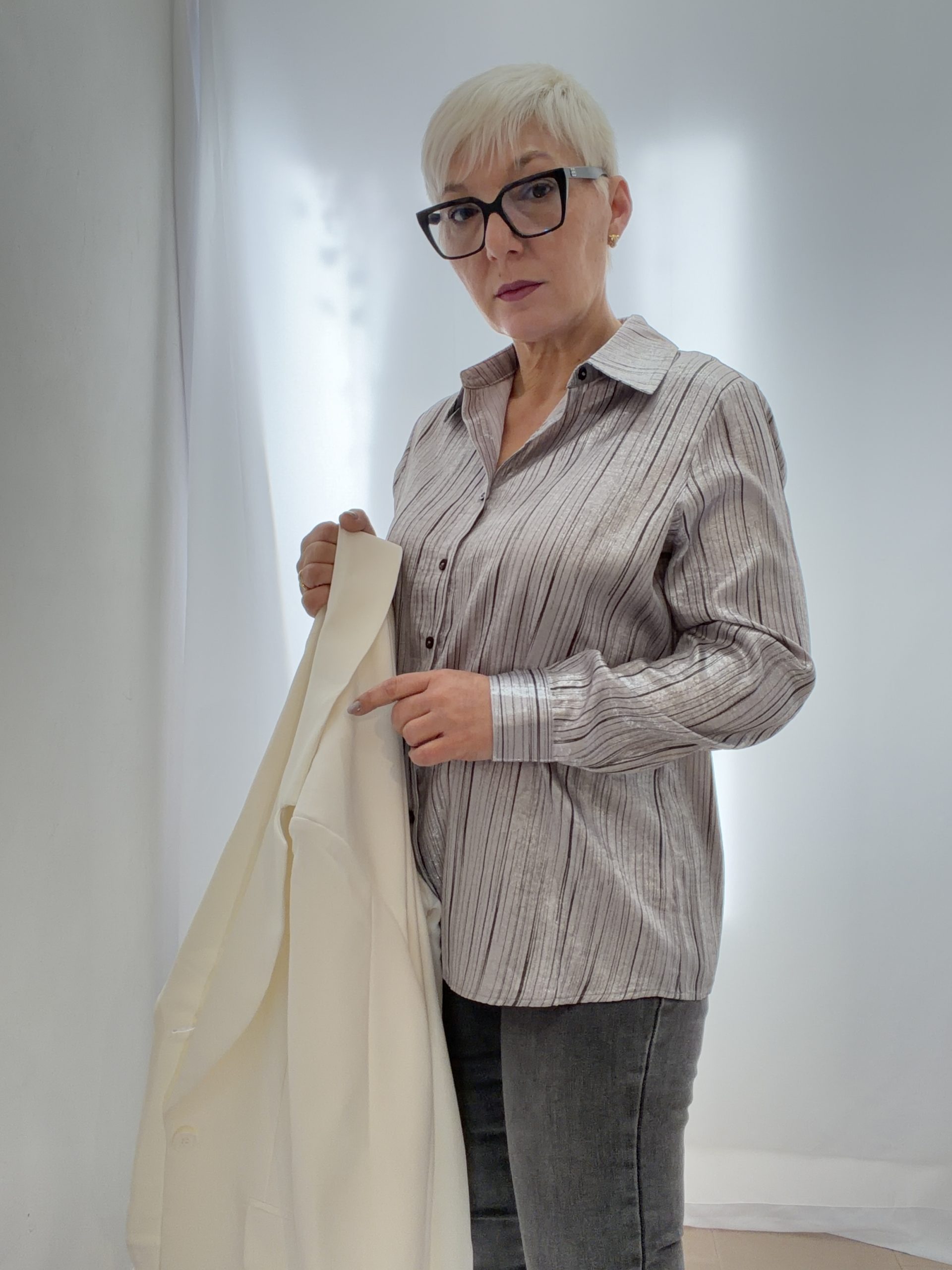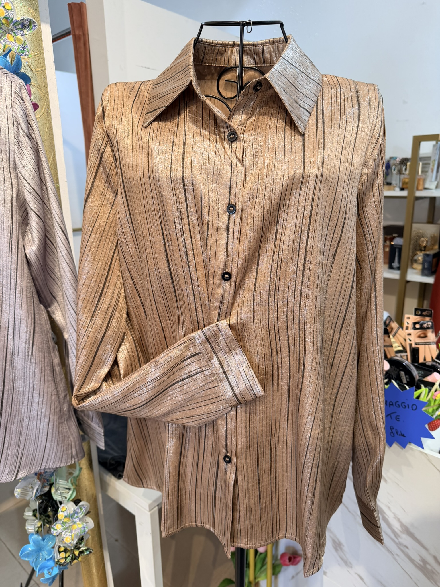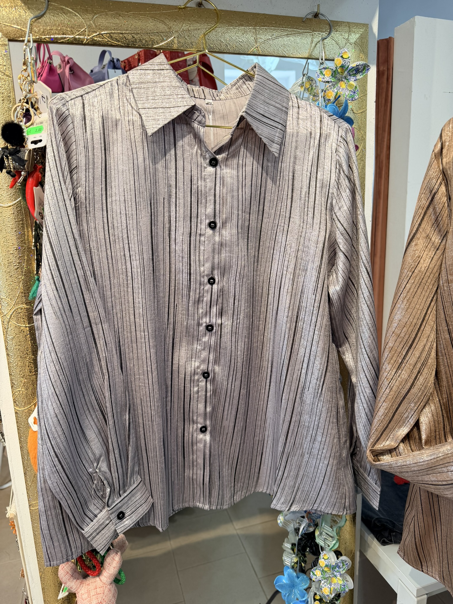 Camicia gessata effetto lurex, oversize