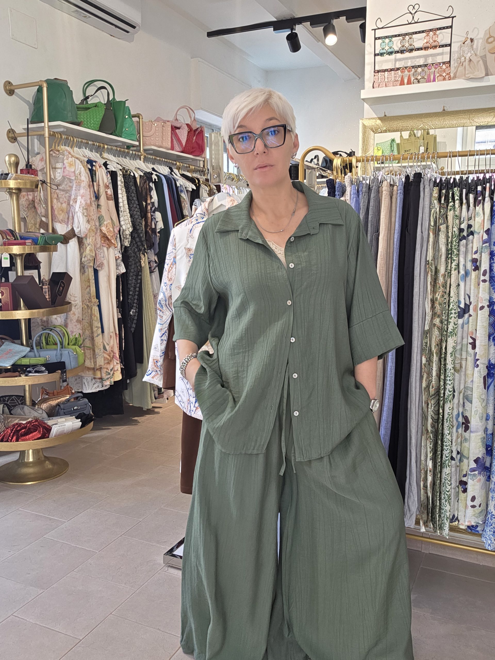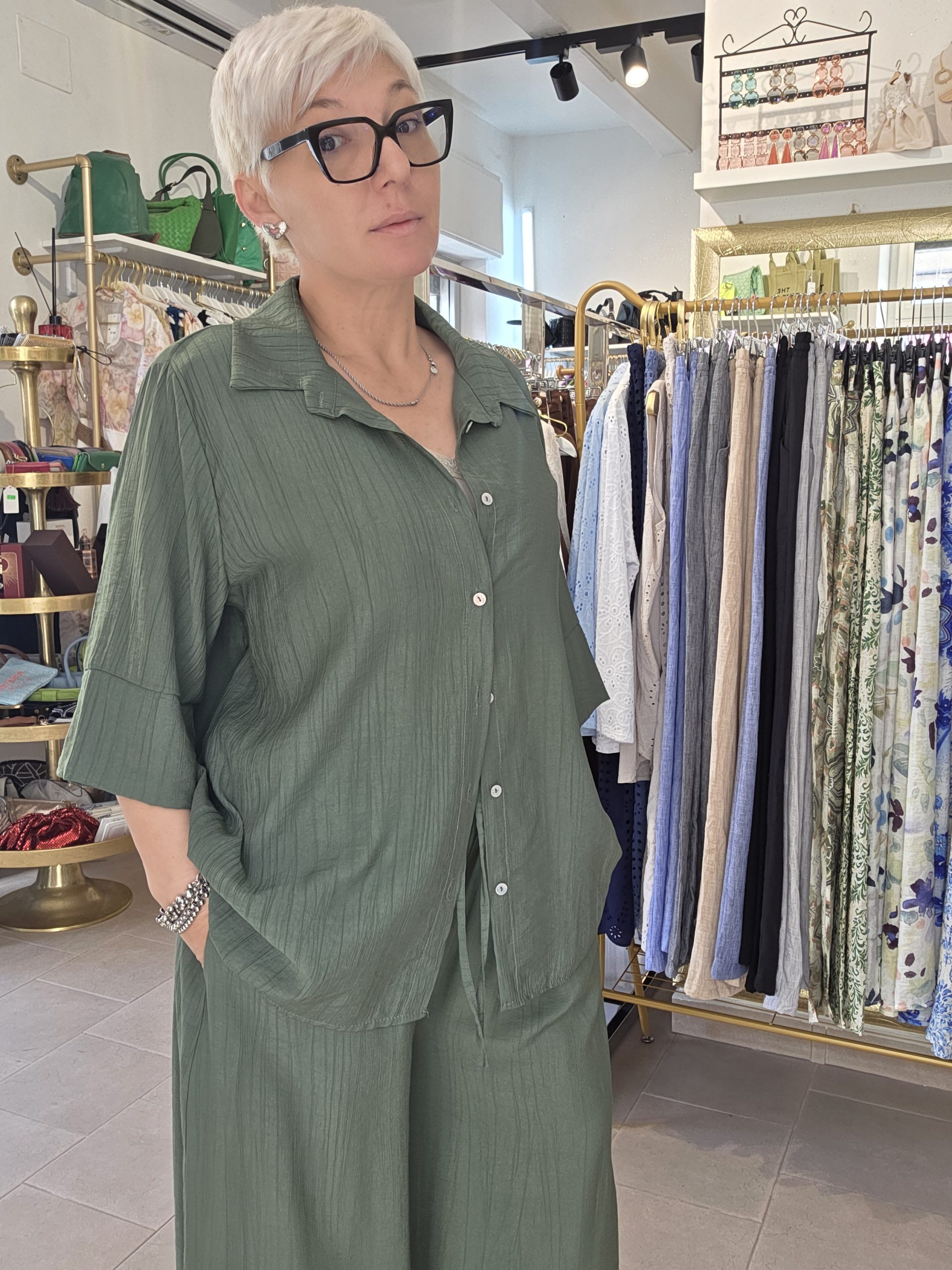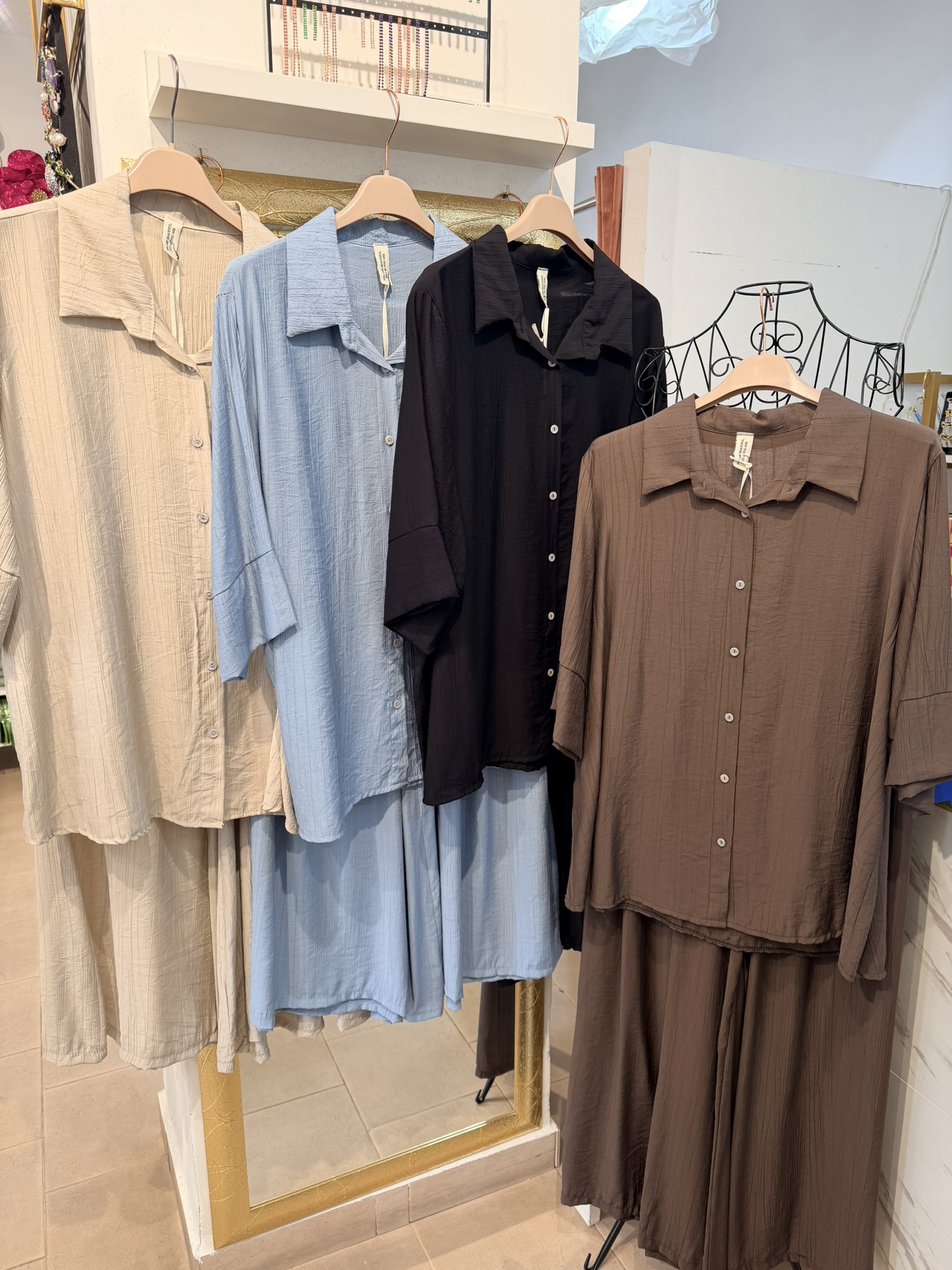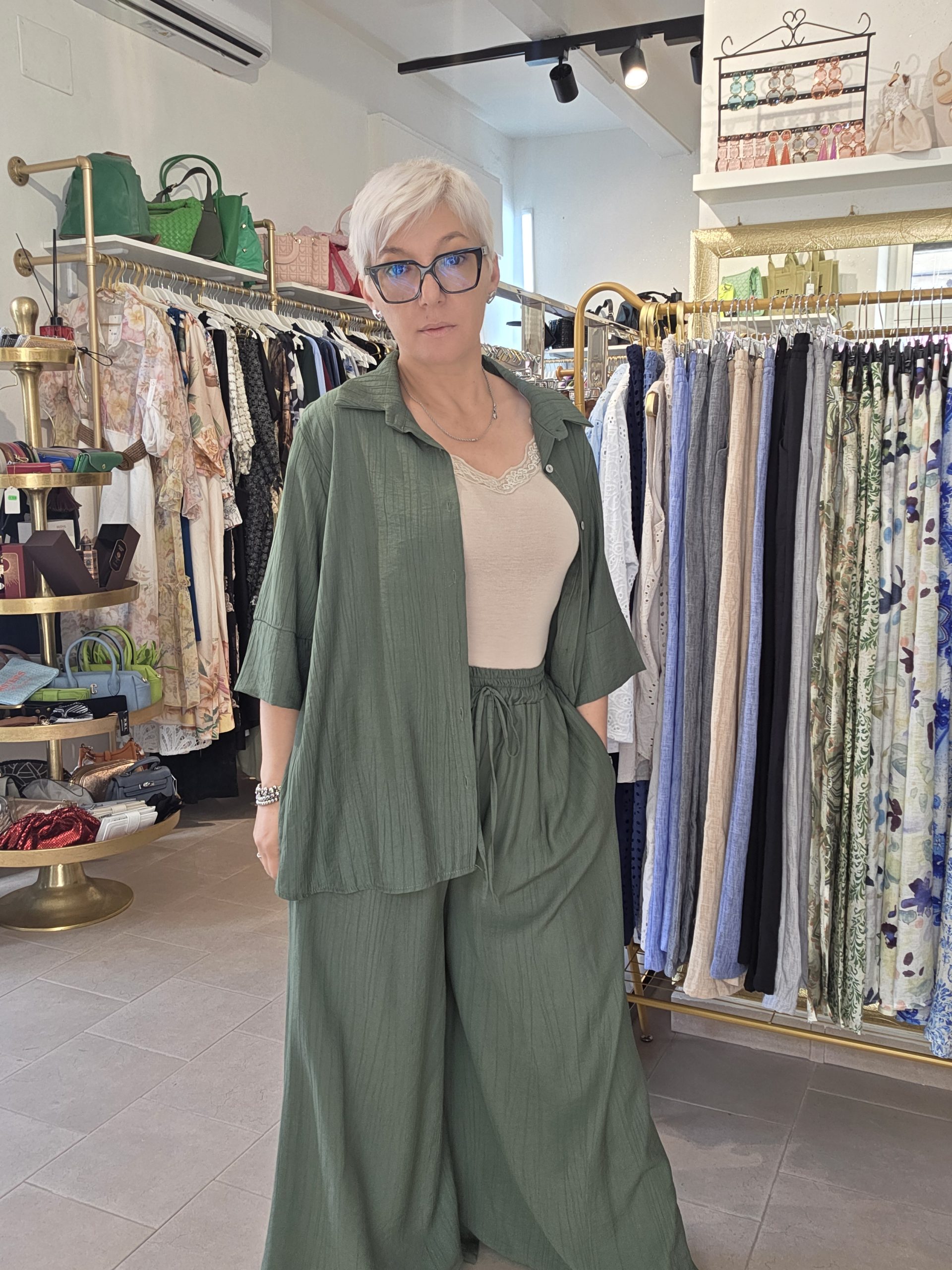 Completo taglia unica curvy, vestibilità dalla 48 alla 54, composto da camicione e pantagonna con elastico in vita