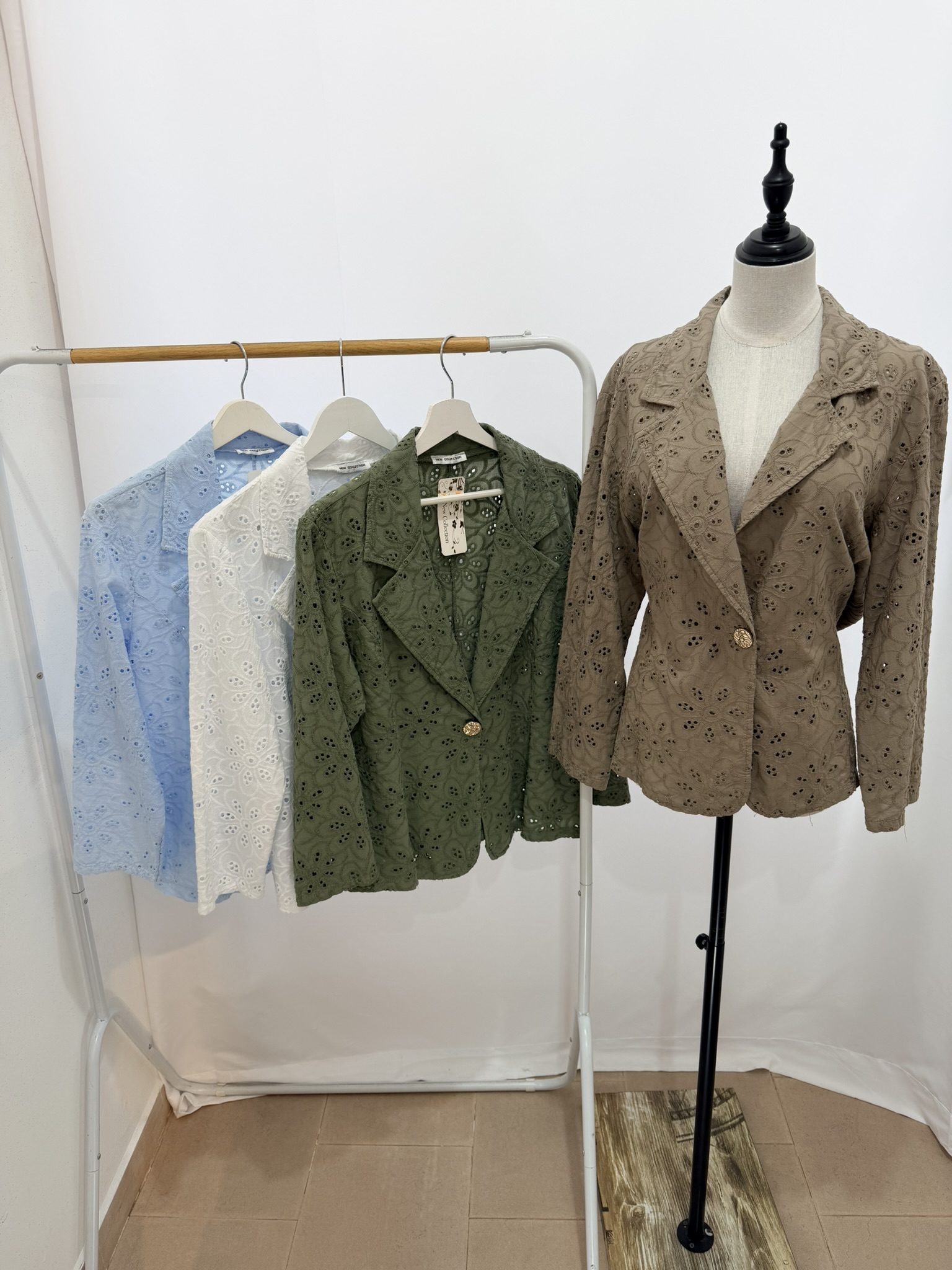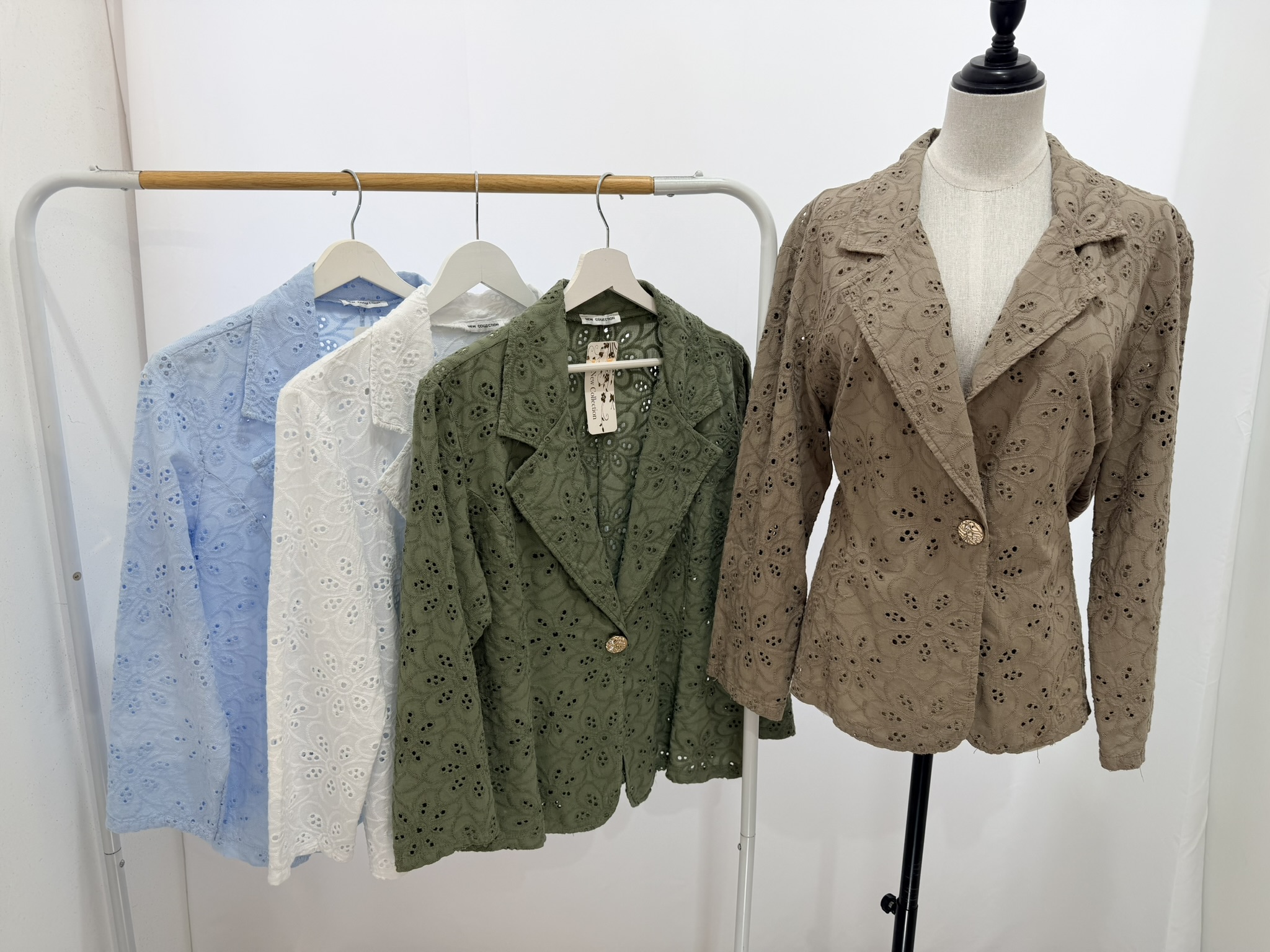 Giacca in sangallo con bottone, vestibilità dalla S alla XL