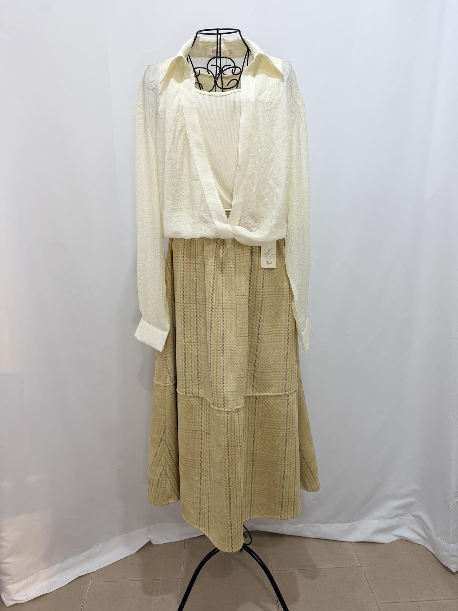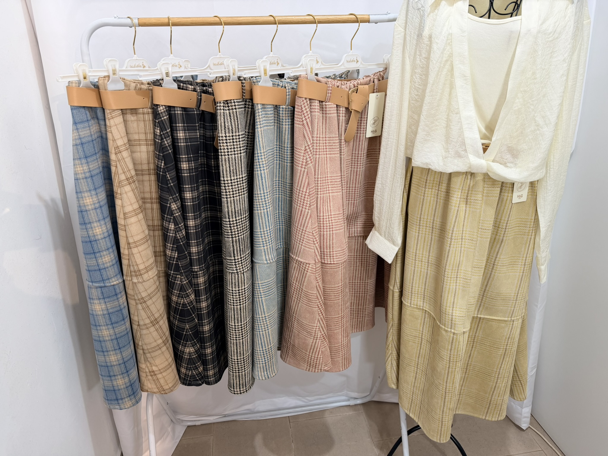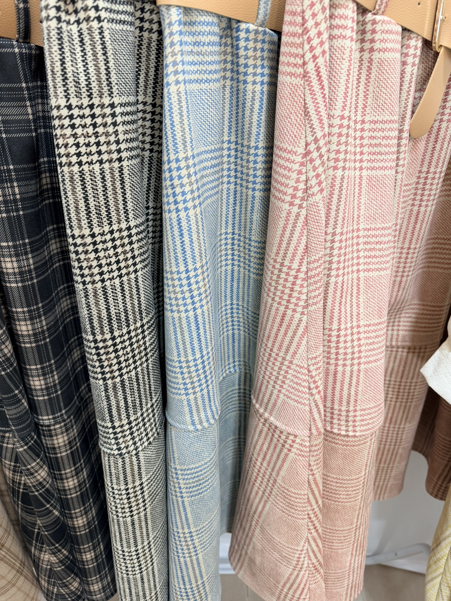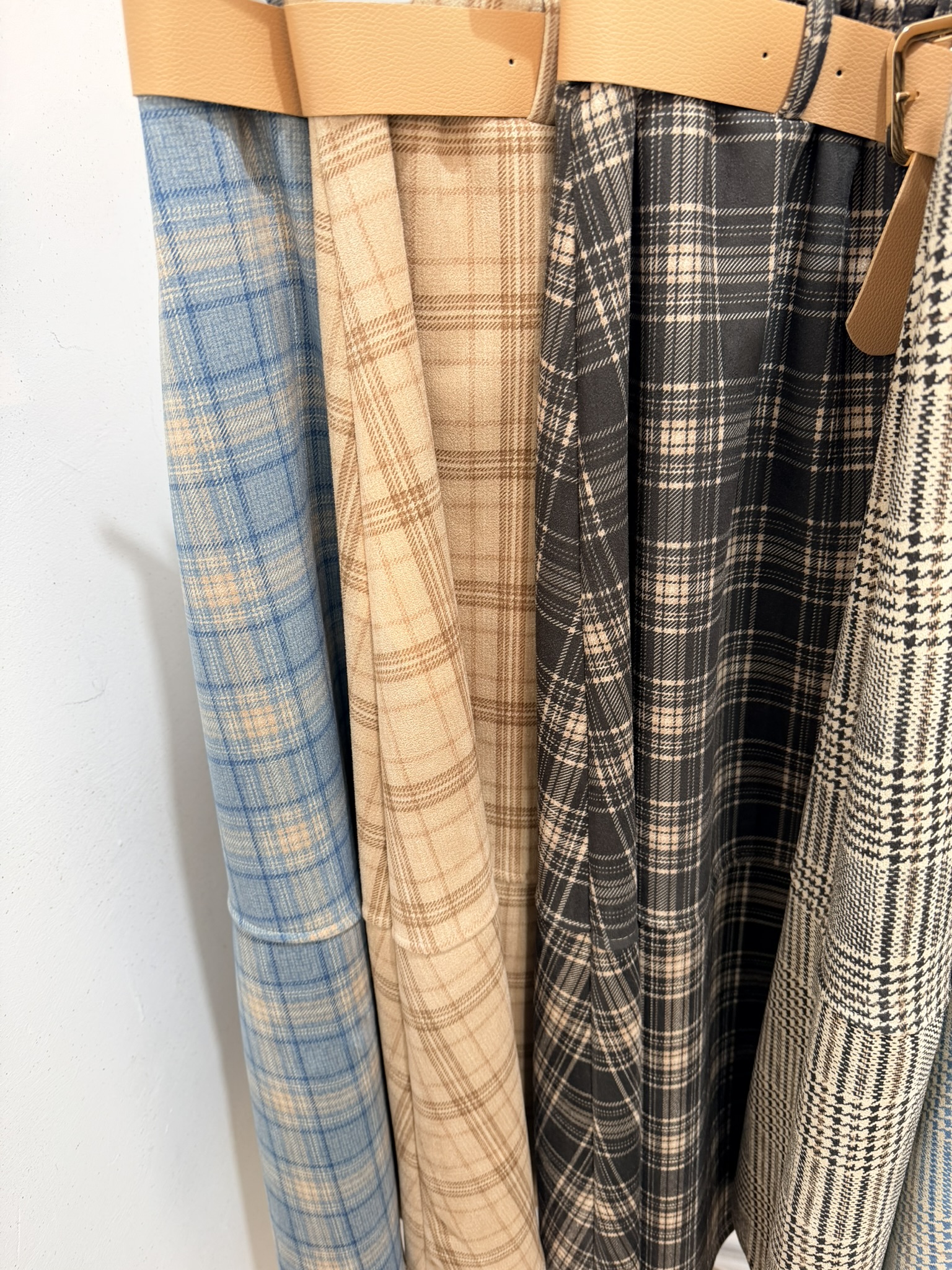 Gonna in suede con motivo tartan grande e piccolo, elastico in vita e cintura, vestibilità dalla S alla XXL