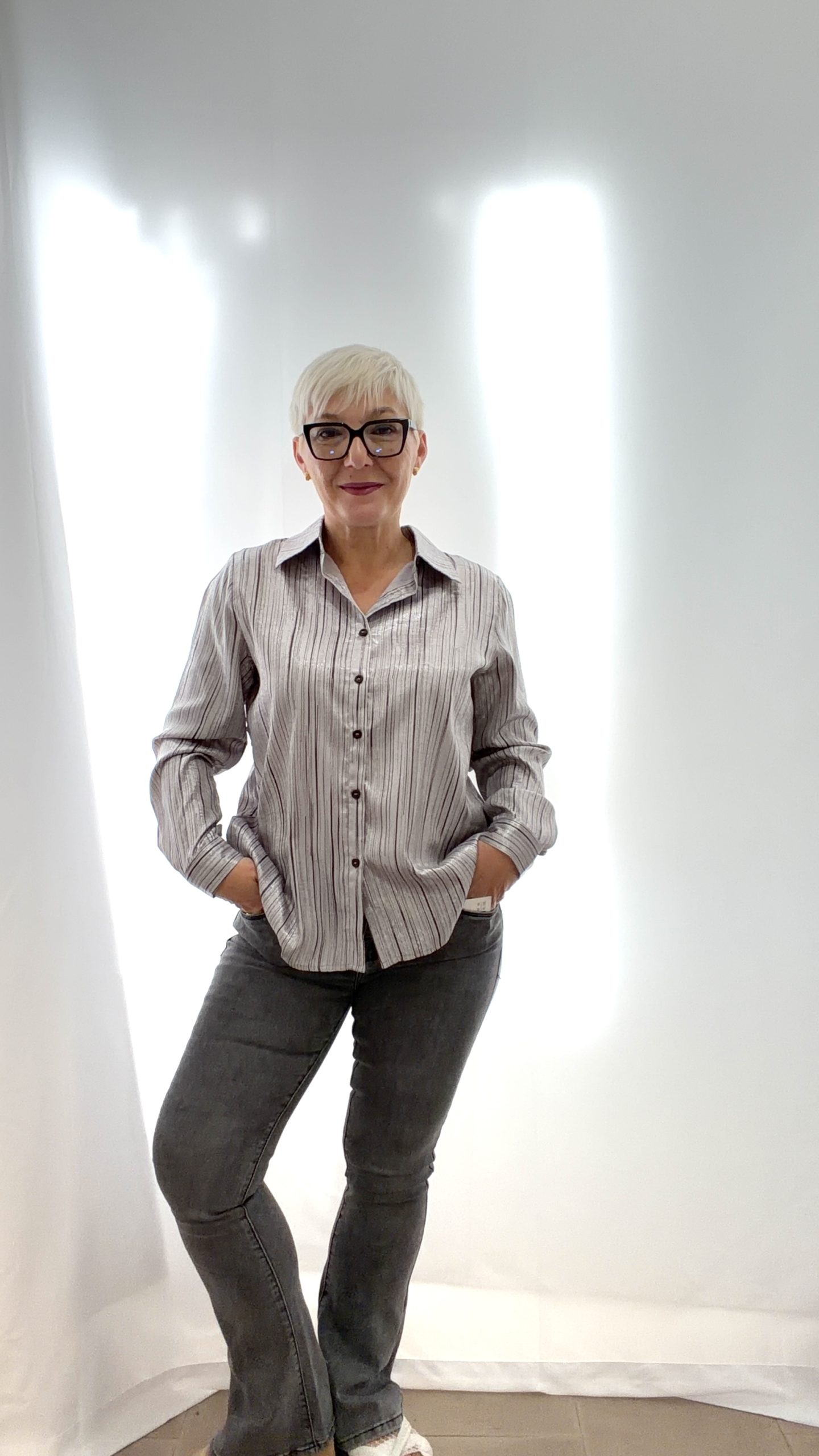 Jeans grigio vita alta a zampa