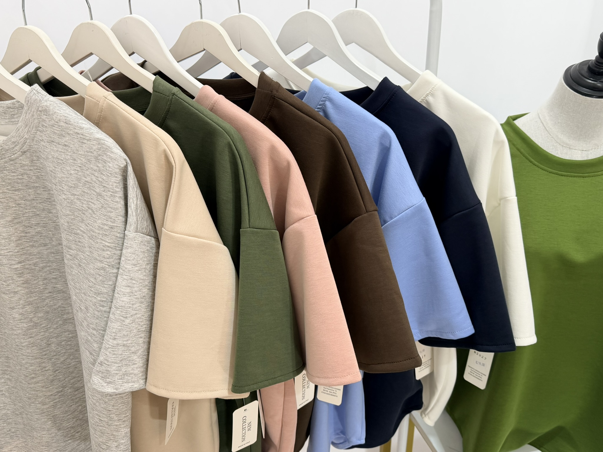 grigio, beige, verde militare, rosa, marrone, azzurro, blu, bianco, verde oliva