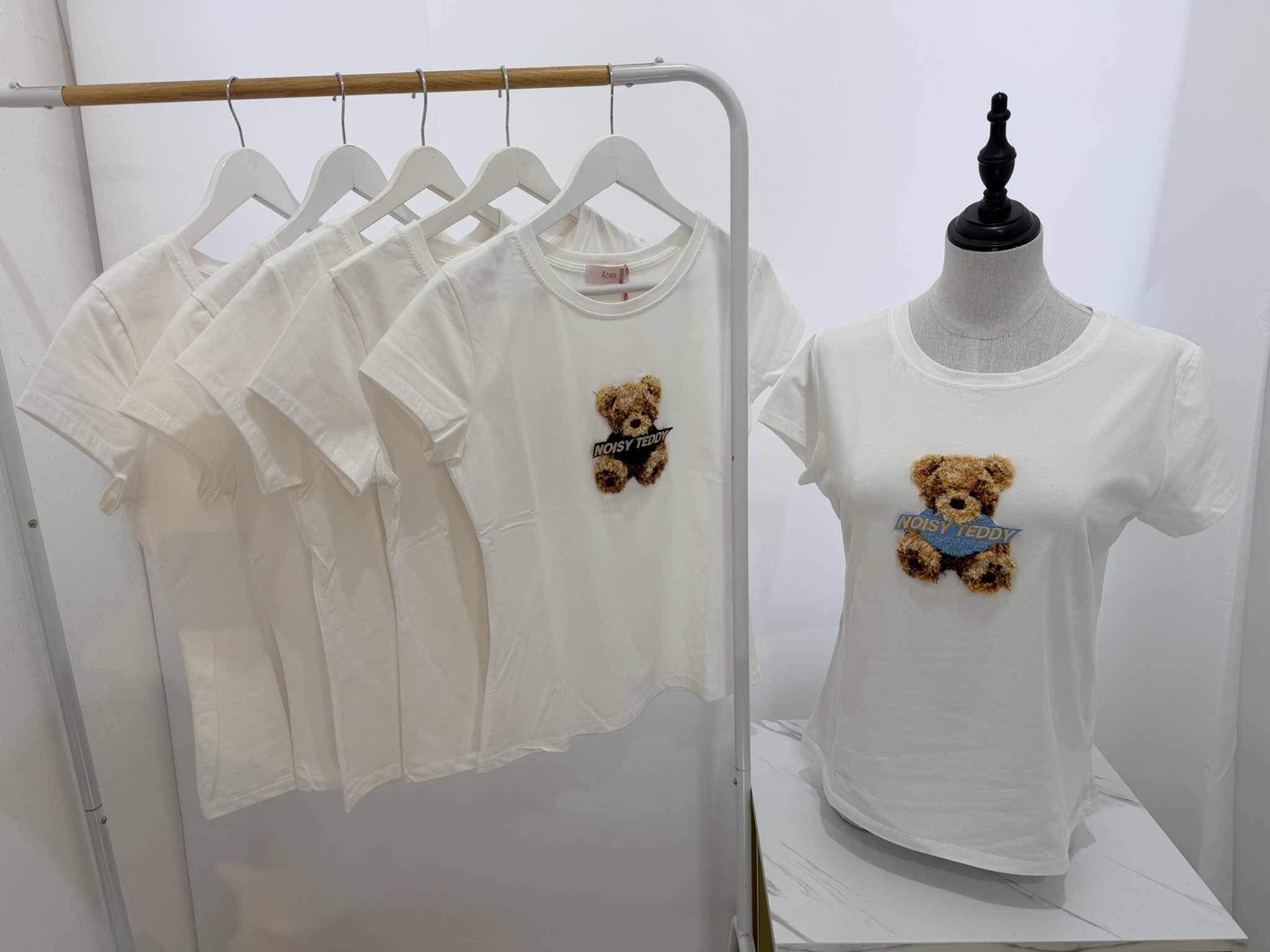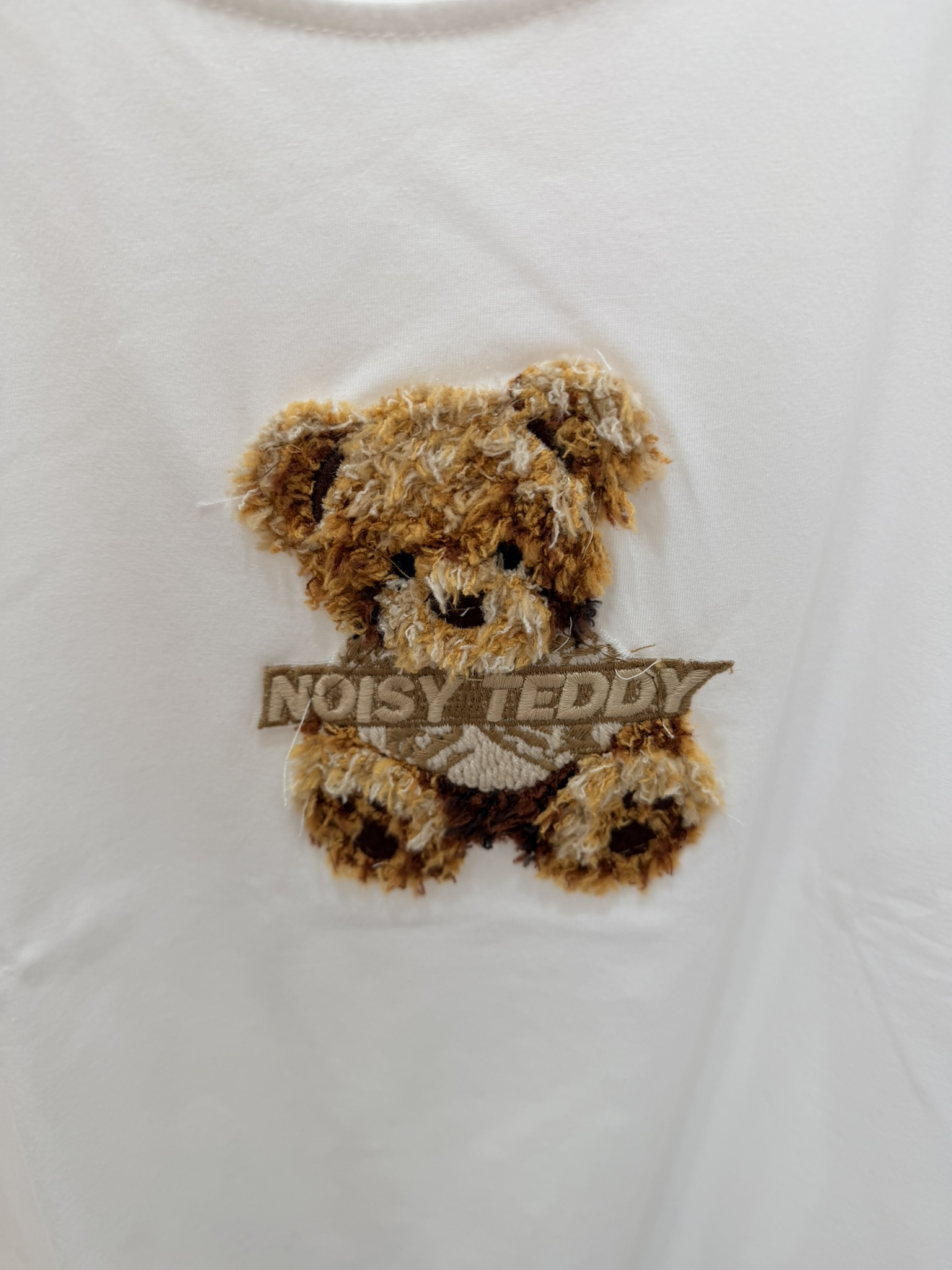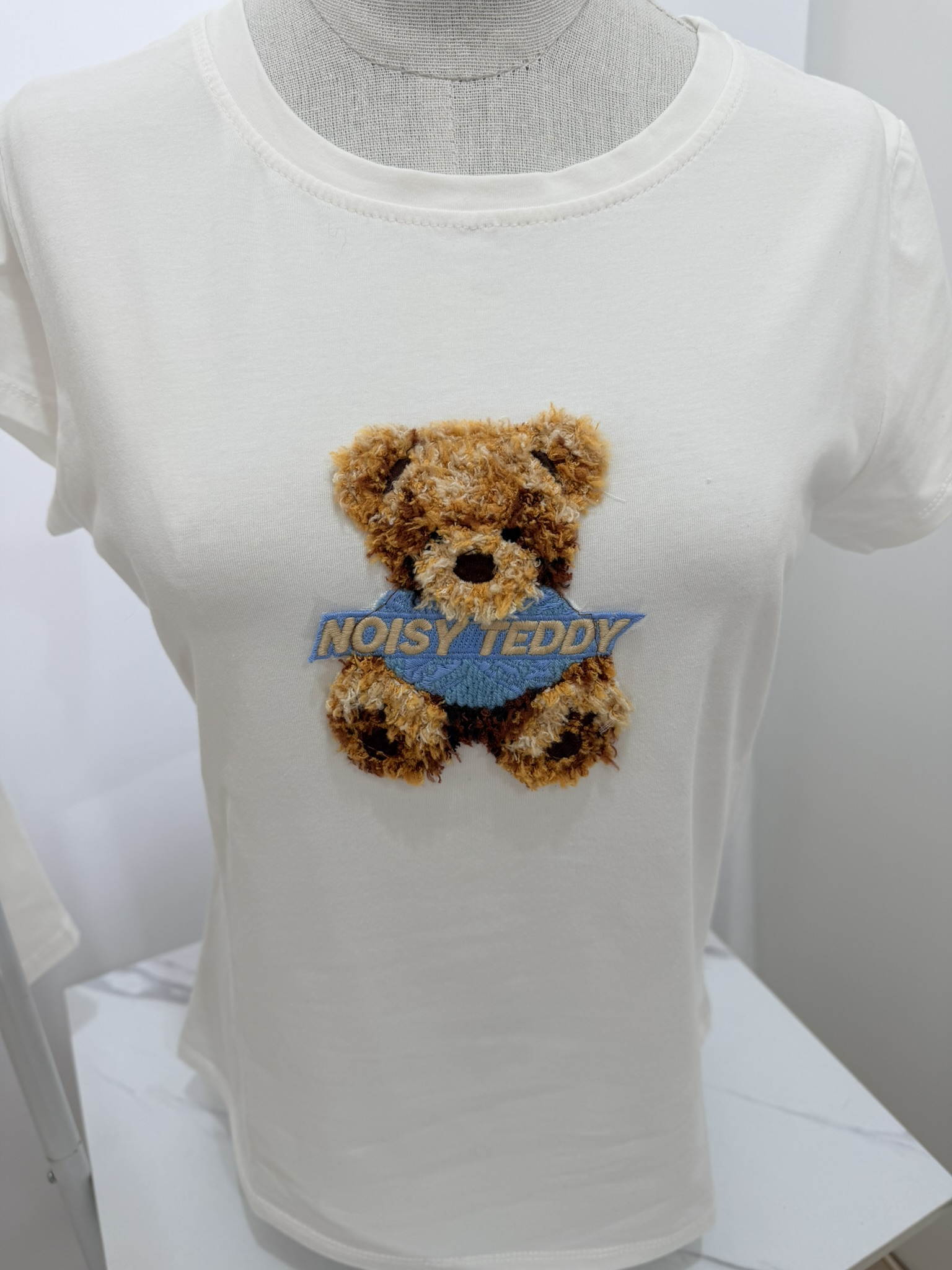 T-shirt con orsetto peluche applicato, taglia unica vestibilità dalla S alla L