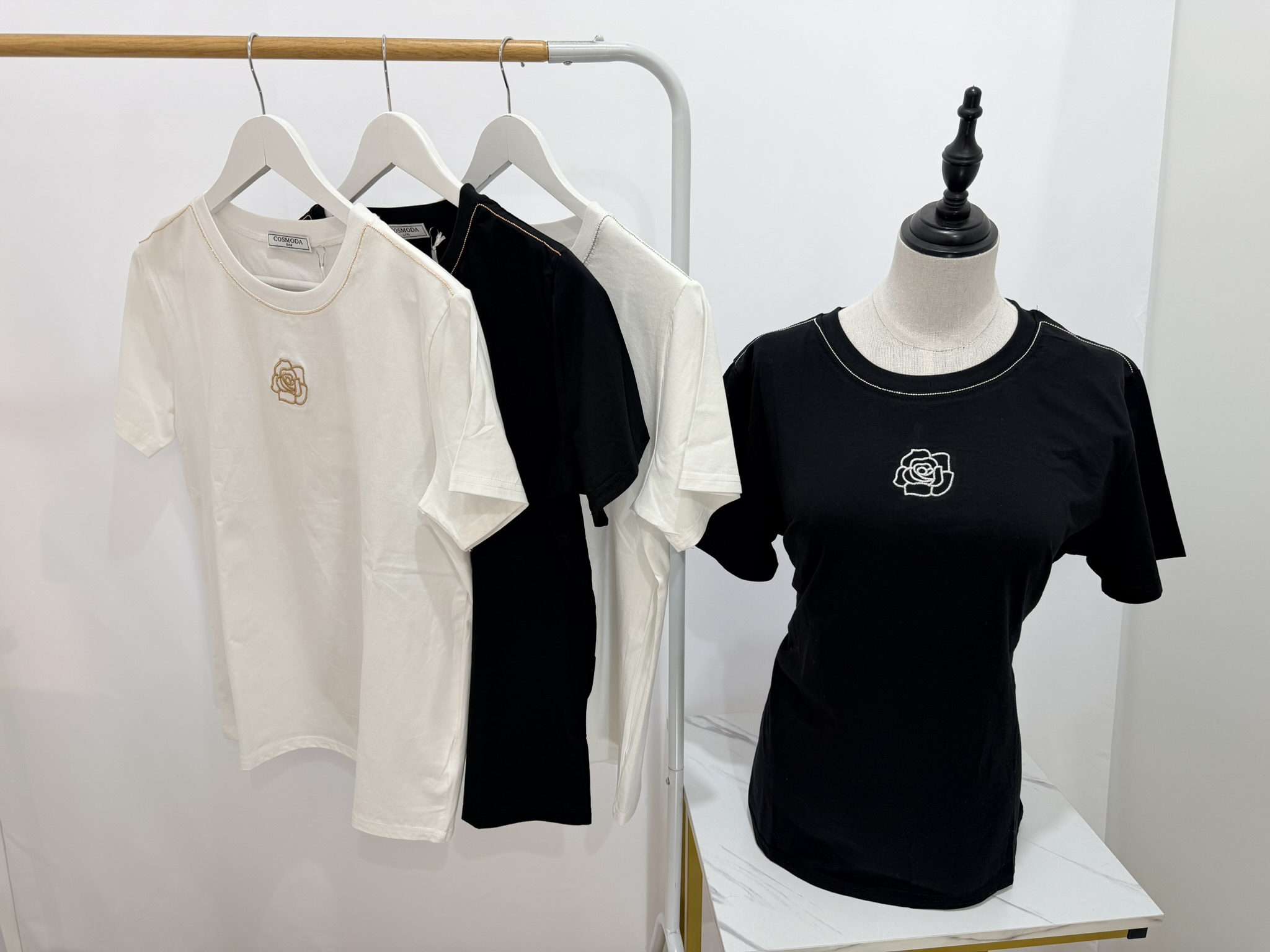 T shirt con rosa ricamata