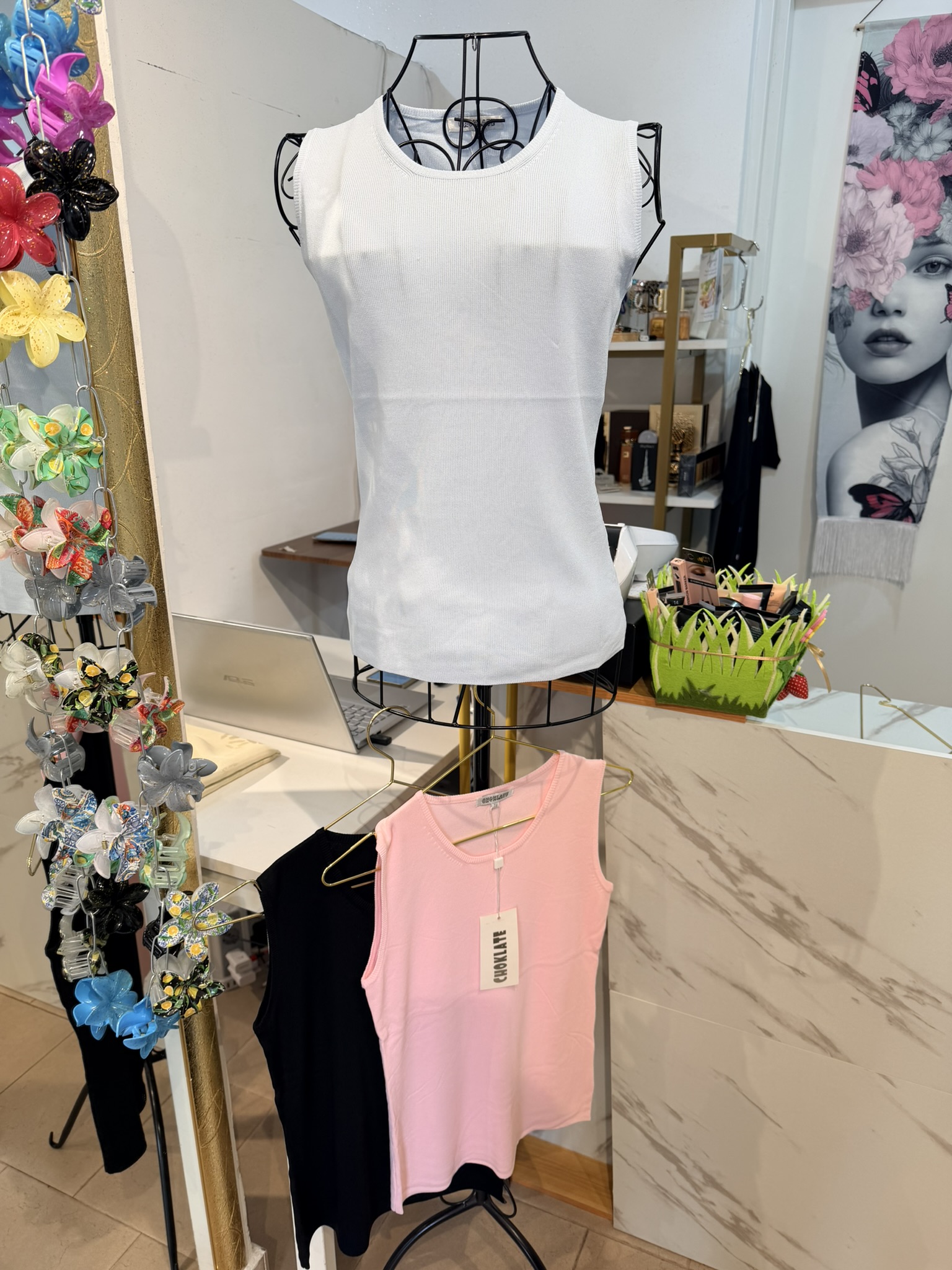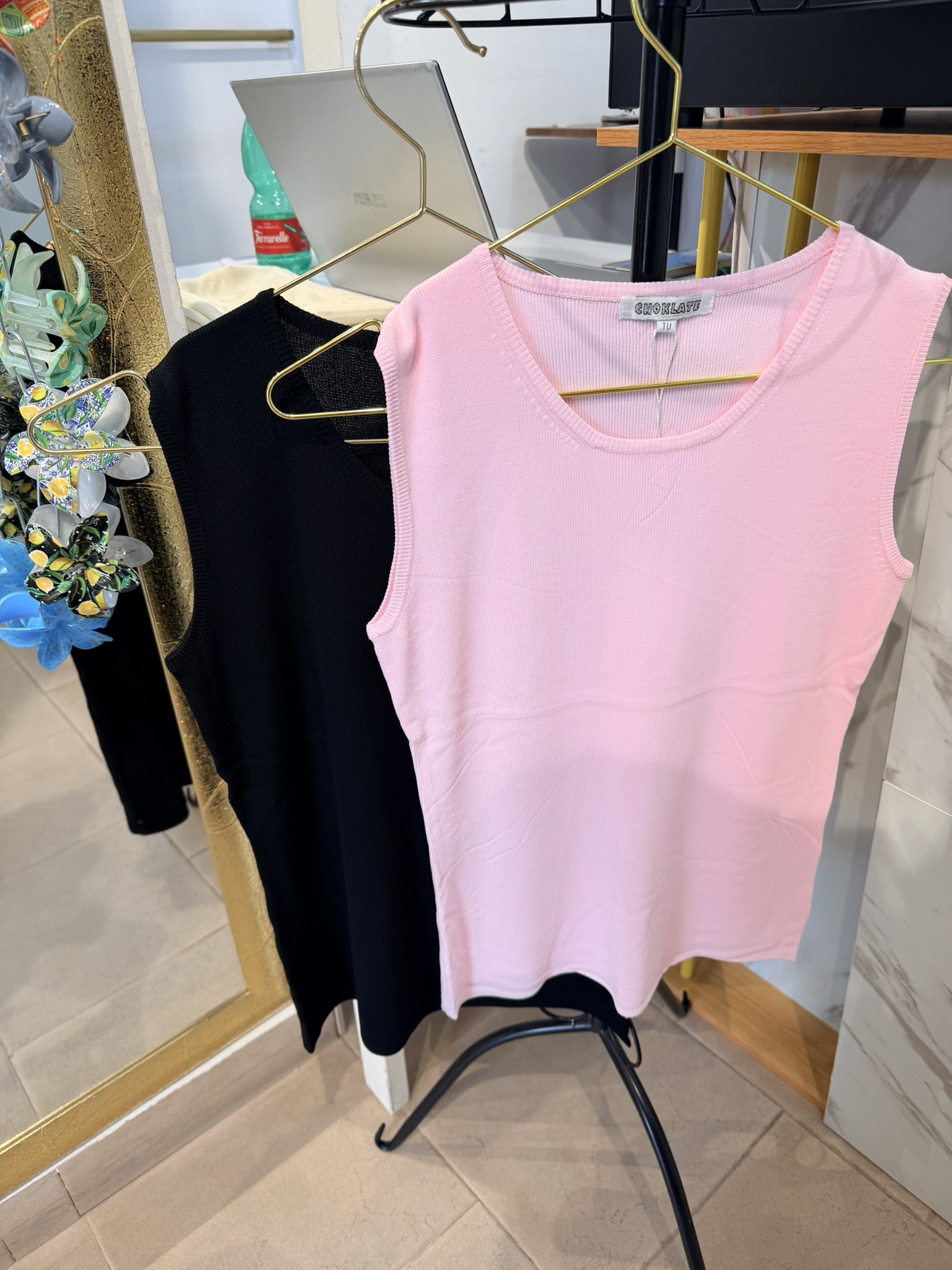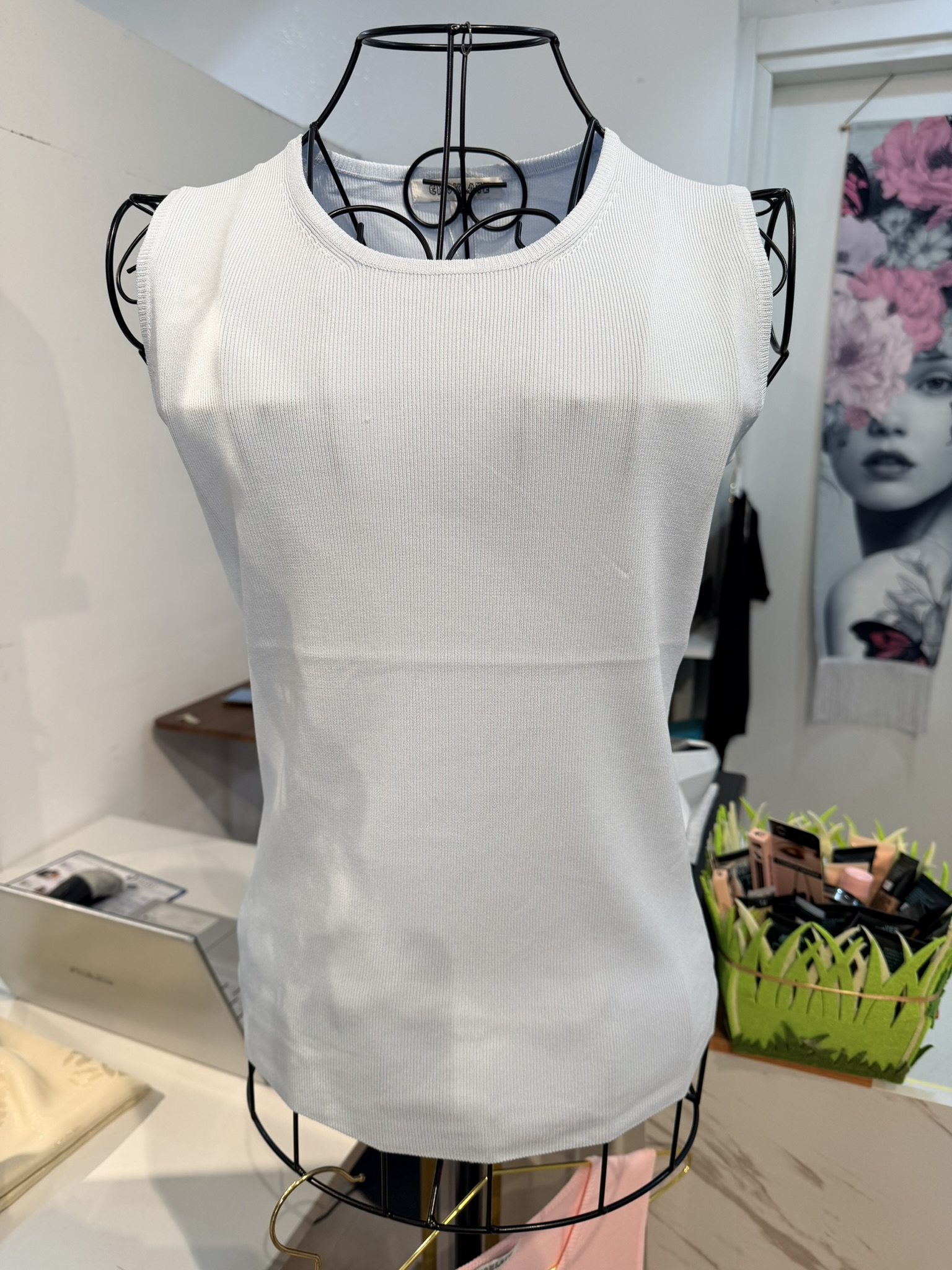 Top in maglia, scollo rotondo e spalline larghe. taglia unica vestibilità dalla S alla L